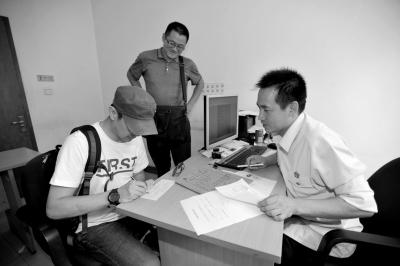 鄢颇在签字,领取赔偿款。京华时报通讯员黄硕摄