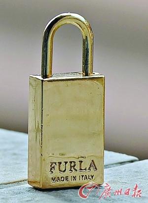 窝点生产的提包的配件锁上也印有FURLA字样。