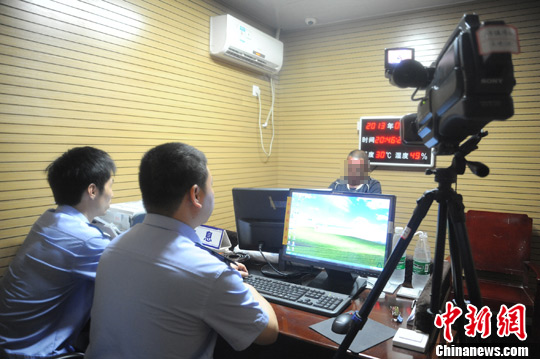 图为犯罪嫌疑人刘某接受审讯。中新社发 钟新 摄