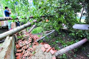 这两天北京时常雷雨交加,在房山区南六环古兰桥南侧的良常路旁,上百棵直径20厘米粗的大杨树倒在路上,路旁的玉米地也成片倒伏,多根电线杆被大树坠倒,导致务滋村等村落停电。