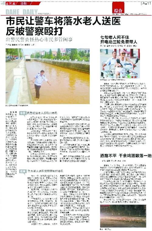 先前报道:洛阳市民劝民警救助落水老人反遭打 被骂多管闲事