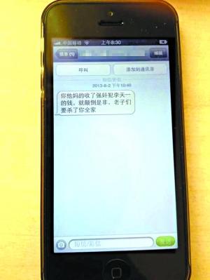 而江西宜春的一名张姓机主坦率承认:“短信是我发的,我看到这个律师发的声明很不合逻辑,替李天一开脱,很气愤,就发了短信,提醒他不要拿了李家的钱就丢去良知,置法律道德于不顾。”记者追问:“你的短信中有一句否则人头落地,你觉得合适吗?”他沉吟了一下,说:“可能是说过了点儿。”但他又再次强调:“我觉得皇城脚下的案子,应该按法律公正审判,不管李天一的爹妈是什么人,他犯了罪就应该受到惩处。”