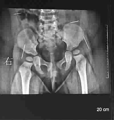 ■ X片显示,女婴体内有四根针状金属物 图 TP
