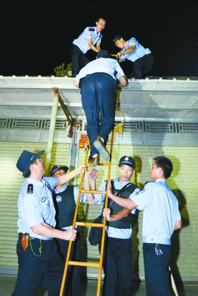 “找到了!”屋顶上霎时传来喜讯。犯罪嫌疑人仓皇跳上屋顶,准备跨到对面楼,不料被民警逮个正着。