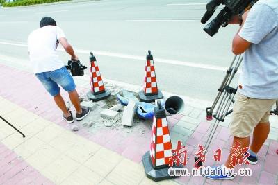被撞毁的电线杆像麻花。记者 张由琼 摄