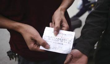 杨先生出示被城管罚款50元的收据。记者 赵永峰 摄