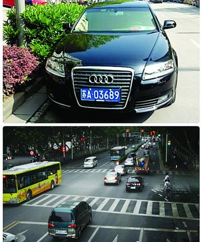 前日,一辆悬挂“苏A03689”的奥迪轿车强行闯关,险些撞上交警。事后,南京交警部门调取该车信息时却意外发现,这副牌照早已注销。昨日,警方专门发出提醒,市民如发现悬挂“苏A03689”的奥迪轿车,请拨打电话报警。 通讯员 王幸福 扬子晚报记者 郭一鹏