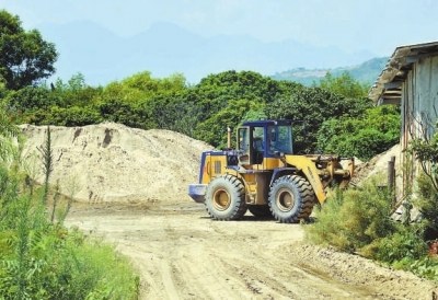 在知情人指引下,记者沿着造船厂旁小路前行,一路上见到不少拖拉机进出,车上所载的河砂还是湿的。顺着车轮痕迹探寻,记者发现了四五处非法堆砂场,由于周边都是树木,堆砂场很隐蔽。场内有好几堆10多米高的河砂,铲车正在忙碌,将河砂搬运到拖拉机上。知情人说,这里每立方米河砂售价只有三四十元,比合法渠道的售价便宜了一大半,所以销路不愁。