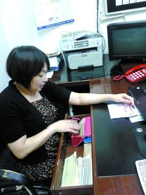 杨女士在清理皮包里的营业款。