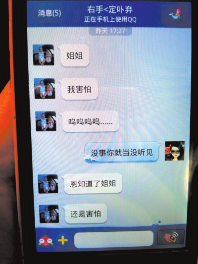 死者姐姐提供的手机聊天记录显示,当天下午5点27分,妹妹QQ短信中向姐姐求助称她很害怕,姐姐安慰她让其假装听不见敲门就行了。聊天记录中,妹妹称,老公他哥哥说要来找衣服,可他从来不在这住,家里压根没他的衣服。“有一次,我在市场摊位上买衣服,他一直在打量我,那种眼神特别吓人。”