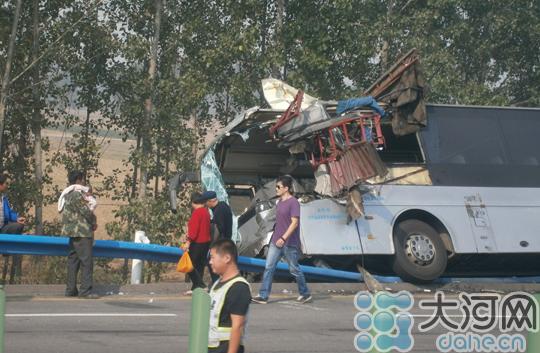 10月7日上午10时10分,大广高速一辆由北向南行驶的山西省太原市大巴,遭到严重撞击压瘪后侧翻在路边沟内。
