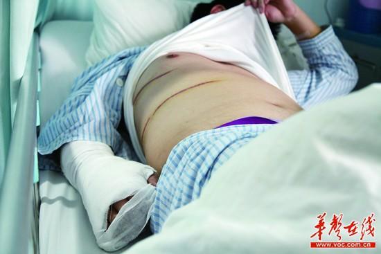 10月8日,省人民医院,曾先生身上有多处刀伤,仍在接受治疗。实习生 刘辉宇 记者 田超 摄