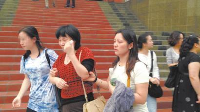 10月14日上午,宋如华一案宣判后,宋如华女儿(左一)带着情绪失控的亲人走出法院。