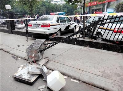 男子驾中巴撞南充交警队法院大门 致两名民警受伤
