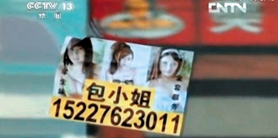 据央视报道 最近,在全国许多城市的大街上不时就能看到贴在地面上的“包小姐”小广告,上面一般都有美女图片、一个广而告之的手机号码以及“包小姐”三个字。