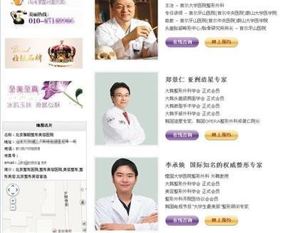 新京报记者调查的北京8家整形机构,都说有韩国医生“坐镇”,多家医院关于韩医的介绍均在业界声名显赫:“亚洲造星专家”“国际知名权威整形专家”。然而身在韩国的整容业资深专家,却都没有听过这些姓名和名号。