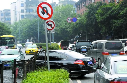 昨日,高新区交巡警支队负责人称,即日起对该路口进行整治,对在此违法左转调头车辆一律罚款100元、扣3分,情节严重者将暂扣驾照一个月。(记者 李澜)