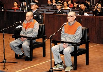 韩磊(右)和同案李明在二审法庭上。