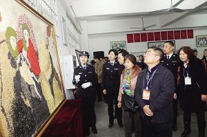 各界人士观看服刑人员的画作