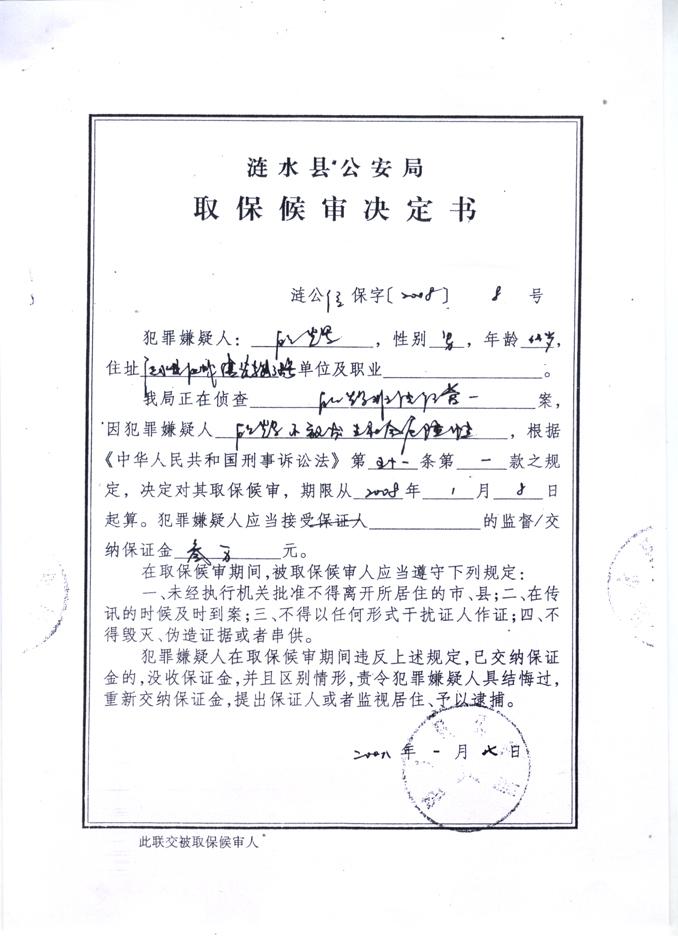 从以上两张图片可以看出,顾辉于2008年1月7日在“转让协议”上签字,当天即获得取保候审,取保候审期限从08年1月8日开始。