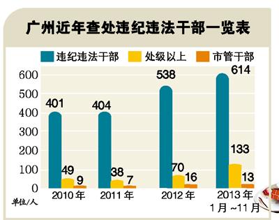 前11月广州614名干部违纪违法 13名市管干部被查处