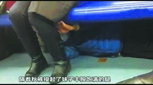 他躺在座椅底下伸出“咸猪手”。网络图片