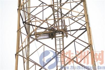 昨日中午12时许,记者赶到现场,看到陈某坐在电塔中部的维修台上,天元消防官兵在塔下铺好了安全气垫,以防其跳下受创。