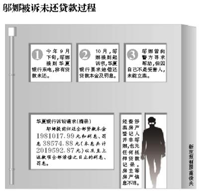 但到了10月8日,邬娜接到了来自东城法院的起诉书,华夏银行起诉称其2009年以一套房子为抵押,向华夏银行灯市口支行贷款284万元,截至今年9月,已经连续3个月累计6个月没有偿还贷款,要求偿还贷款本金及罚息。
