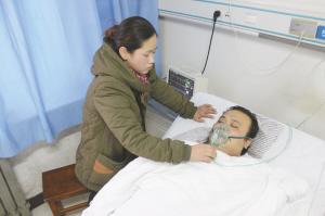 戴着呼吸器,上半身缠满绷带,体内的淤血还在缓缓地排出,躺在病床上的吴春光显得虚弱。他的妻子吴玉梅双眼红肿,一边抽泣着一边为丈夫揉捏着身体。在吴春光的病床旁,站着他的十几位亲戚,大家都静静地看着躺在床上的中年汉子,不停地叹着气。