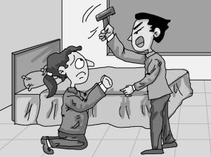 油漆工举锤砸向情人