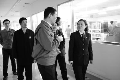 南长法院副院长林春江(右一)一行走访辖区企业,就企业用工问题进行调研。
