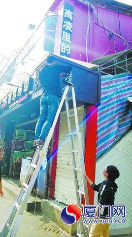 鼓浪屿整治户外广告 一天拆除违规店招133块(图)
