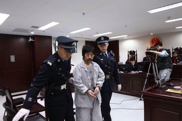 宣判结束后,法警将犯罪嫌疑人押下法庭。三中院开庭宣判51岁嗜酒男子杀妻案。摄影 新京报记者 周岗峰