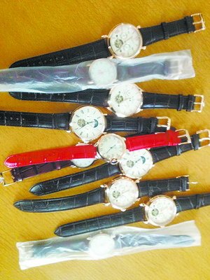 警方初步调查发现,这名男子姓王,今年47岁,浙江平阳县人,该男子身上共有11块所谓的男女式名表。至于这些表的来源和价格等问题,警方正在进一步调查。(文/图 记者 汪长福 通讯员 万里)