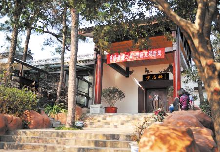 昨日,记者在岳麓山上的步虚楼前看到,原本用作高档消费的豪华包厢,大门被贴上了封条。邹麟 摄