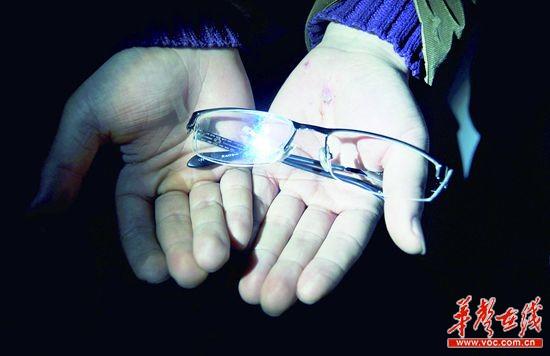 1月20日,长沙市高桥大市场,在打斗的过程中,陈章的眼镜被弄坏,手上还有伤痕。 实习记者 李健 摄