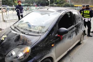在通过对讲机了解到情况后,五中队指导员张翊和民警胡涛立即赶过来,紧随黑色轿车进入博爱路,此时博爱路已出现缓行,两人下车走至黑色轿车的前方,但此时司机已关上车窗,两位民警在车外先后3次示意驾车男子下车,但对方却不予理睬。