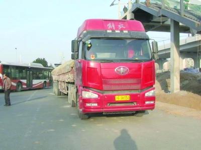 运输硫酸亚铁的货车。梅建明 摄