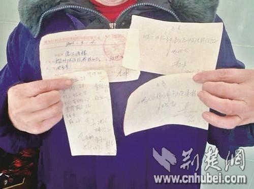 图为:德江酒楼老板方女士拿着4张泛黄的欠条