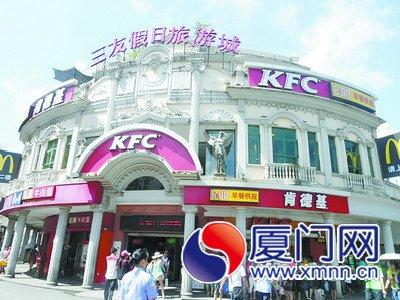 鼓浪屿执法部门持续开展违规户外店招整治行动,维护岛上建筑风貌。图为龙头路8号二楼肯德基违规店招被拆。