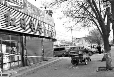 现场已拉起警戒线。2月6日,一男子进入一店铺,将店老板和其儿子扎伤,后老板身亡。新京报记者 范春旭 摄