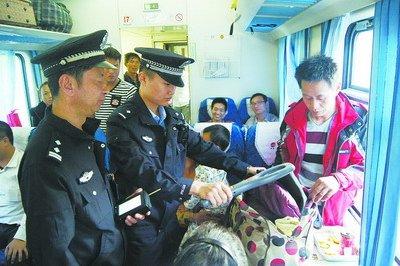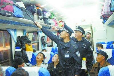 铁路民警在列车上排查安全隐患。