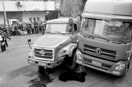当日下午4时许,沈阳晚报、沈阳网记者赶到事发地——沈河区小南街南翰林路。由于发生车祸,这里已经被戒严,消防、公安等相关部门都来到现场,被碾轧致死的大货车副驾驶员的尸体已经被移走。现场只留下挤在一起的两辆大货车,一辆是辽阳牌照、一辆是河北牌照。从现场情况分析,应该是停靠在右侧的辽阳牌照大货撞向停在左侧的河北牌照大货车。两车相撞部位的地面上,有一摊血迹。