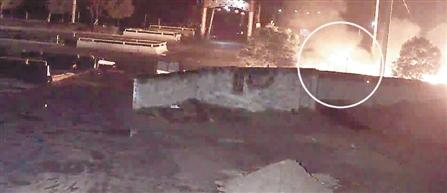 深夜里,轿车撞上绿化带起火
