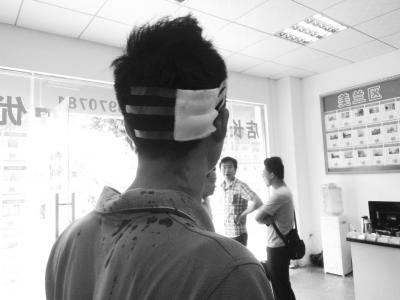 在民警的协助下,10分钟后,记者在海口市人民医院龙昆南门诊部三楼找到了正在包扎头部的易先生。易先生说,头部被打流血后他一路跑到了这家门诊处理伤口。易先生表示,打人的这名男子并不是之前和他签协议书的业务员,房产中介公司的工作人员如此行事,让他十分不解。