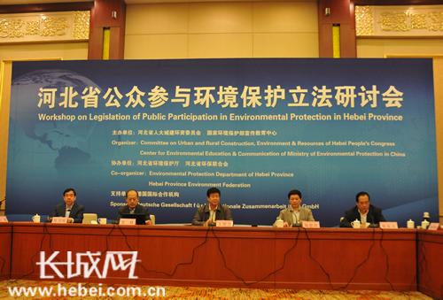 4月22日,河北省公众参与环境保护立法研讨会在石家庄太行国宾馆召开。出席会议的国家环境保护部、河北省人大常委会、河北省环境保护厅的领导与中国政法大学、北京大学、浙江大学、北京师范大学、国务院发展研究中心的专家学者,德国国际合作机构、中欧环境治理项目办公室的代表,山东、山西、浙江等省市环保部门和民间环保组织的代表齐聚一堂,围绕公众参与环境保护综合立法展开热烈研讨。