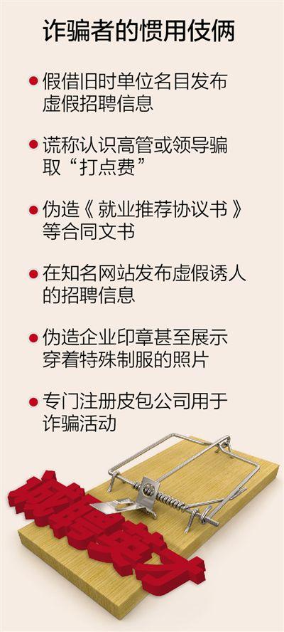 眼下,又是新一批大学毕业生找工作的高峰时期,同时也是骗子们假借招工进行诈骗的“黄金时期”。北京市朝阳区人民检察院日前通报了一批假借解决工作为由进行诈骗的典型案件,披露了骗子们的一些惯用伎俩。