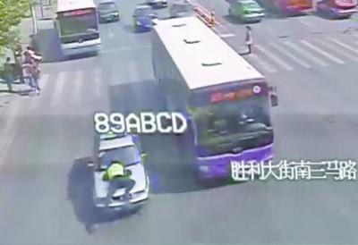 4月20日上午9时40分许,翟某驾驶这辆银灰色出租车在沈阳市胜利大街民主路路口违法调头,被市交警支队和平一大队民警陈柏泉拦下。“车停了,我正常上去处罚。”陈柏泉说,自己敬礼后要求对方出示证件时,没想到车却突然启动。陈柏泉迎着车扑了上去。