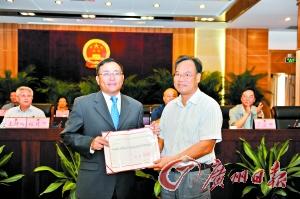 骆毓林接过市食品药品监督管理局局长任命书。佛任宣供图