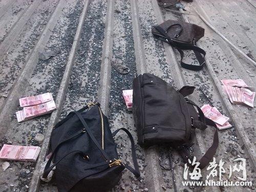 一位目击者告诉记者,民警在窗外取钱时,她也在现场。她看到,每一捆大约是一万元,除了外面散落的12捆外,三个包里也装满了钱,主要是百元大钞,另有零星的50元和10元等。其中,最重的一个包里有32万元。据民警现场简单估算,丢下来的钱,有60多万元。